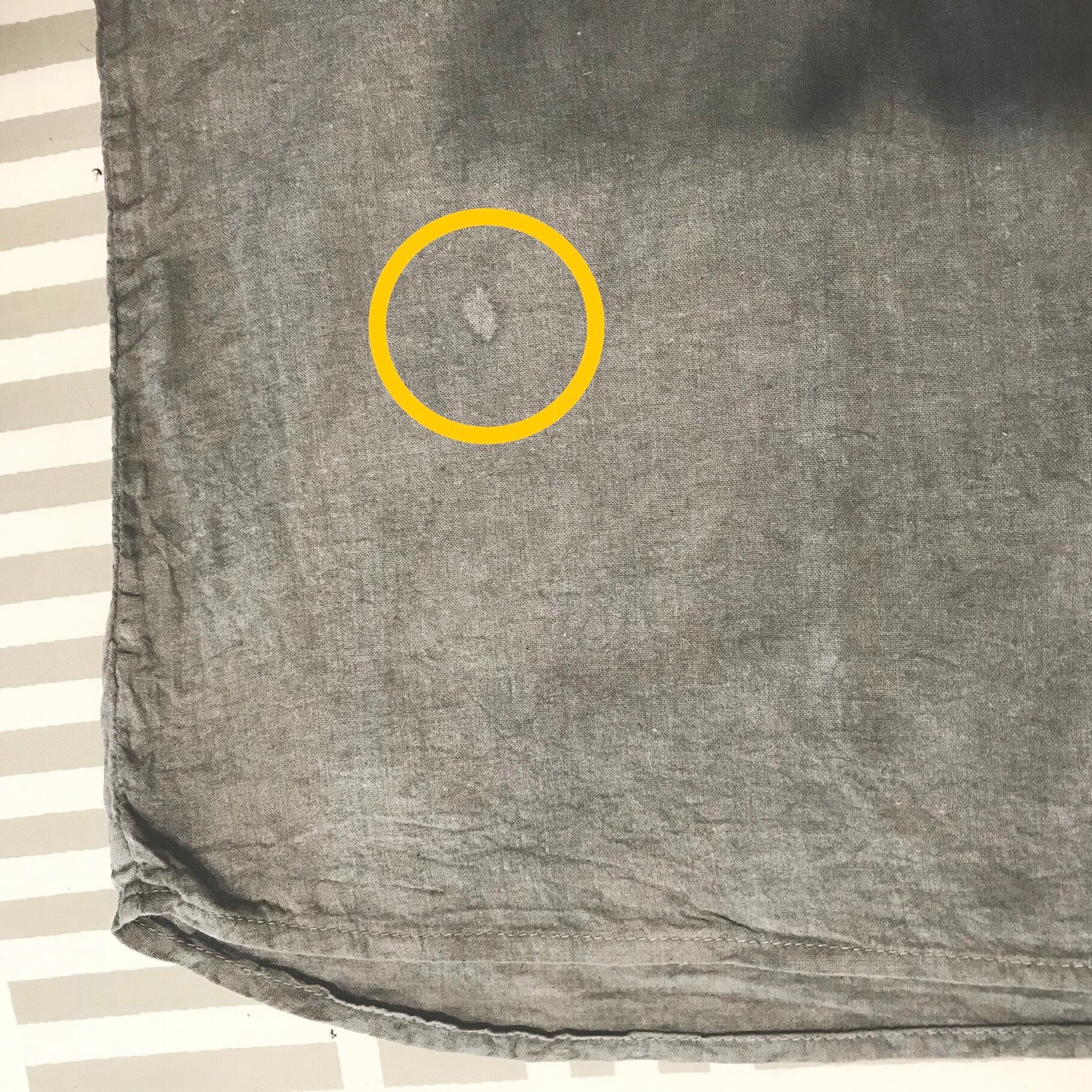 前側の下から15センチ右から10センチのところに写真のような染めシミができてしまいました。